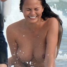 Chrissy Teigen nude photo shoot at Miami beach topless show big boobs …
